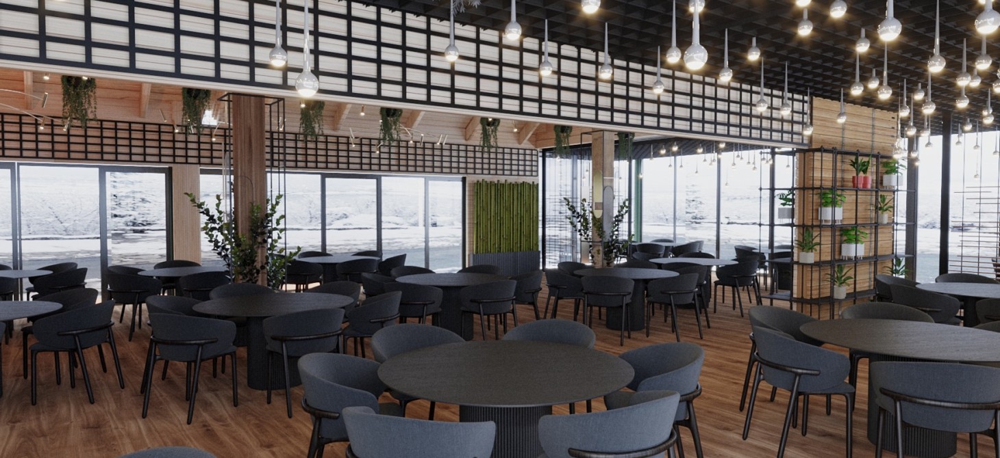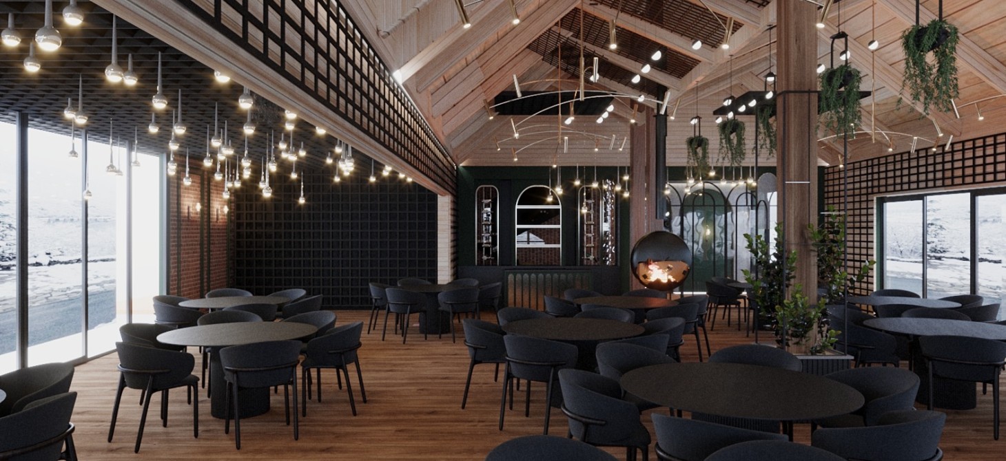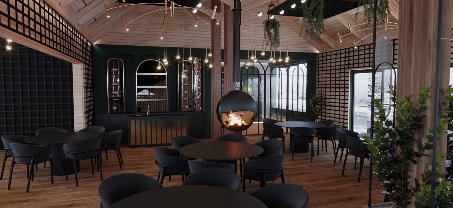 A space where mountain charm meets modern elegance. With soaring wooden ceilings, panoramic windows, and a glowing central fireplace, this restaurant is designed to create warmth, connection, and unforgettable dining moments. Natural materials, contemporary lighting, and lush greenery blend seamlessly, offering guests a cozy yet sophisticated retreat in the heart of the mountains.